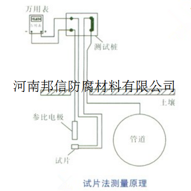 管道的腐蝕會發(fā)生在防腐層缺陷點(diǎn)處,如果防腐層是完整的,管道就不會腐蝕。我們真正關(guān)注的是管道防腐層缺陷點(diǎn)處的保護(hù)水平。為了測量防腐層缺陷點(diǎn)處的保護(hù)電位,我們用試片來模擬管道防腐層缺陷點(diǎn)。該試片平時(shí)通過測試樁與管道連接,得到同樣的陰極保護(hù)。測量時(shí),將試片與管道的連接瞬時(shí)斷開,這樣就可以測得試片的斷電電位而不需要對管道上的所有電源進(jìn)行中斷。試片的電位就是同一水平位置的管道防腐層與試片面積相等的缺陷點(diǎn)處的保護(hù)電位。該方法同時(shí)消除了雜散電流等各種干擾因素的影響,也可得到較為準(zhǔn)確的保護(hù)電位。