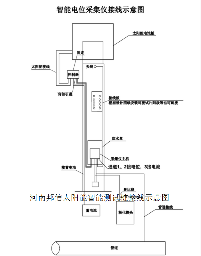 河南邦信管道電位監(jiān)測智能測試樁是利用測試樁處布置的采集儀,配合長效參比、極化試片等埋地裝置,將長輸管道的陰極保護(hù)的通/斷電電位、自然電位、交流電流、交流電壓等數(shù)據(jù)實(shí)時(shí)上傳監(jiān)測系統(tǒng),并進(jìn)行數(shù)據(jù)存儲(chǔ)、展示、統(tǒng)計(jì)、分析等。對于無干擾源的部位,通過采集的數(shù)據(jù),分析陰極保護(hù)系統(tǒng)運(yùn)行情況,同時(shí)能夠及時(shí)發(fā)現(xiàn)新干擾源的存在和干擾程度,從而起到主動(dòng)監(jiān)測的作用。對于已知的干擾部位,能夠有效檢測雜散電流的干擾情況,為治理提供大量數(shù)據(jù)依據(jù)。對于排流后的效果也可以進(jìn)行監(jiān)測。