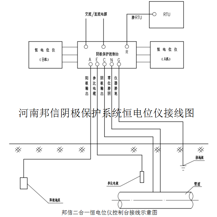 強(qiáng)制電流陰極保護(hù)系統(tǒng)恒電位儀控制臺(tái)接線示意圖紙